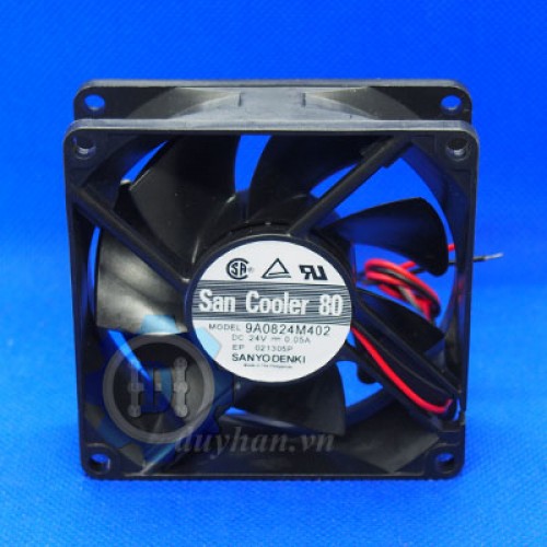 9A0824M402, Quạt tản nhiệt Sanyo Denki, 24VDC, 0.05A kích thước: 80 * 80 * 25mm, điện áp hoạt động 24vdc, dòng điện 0,05A